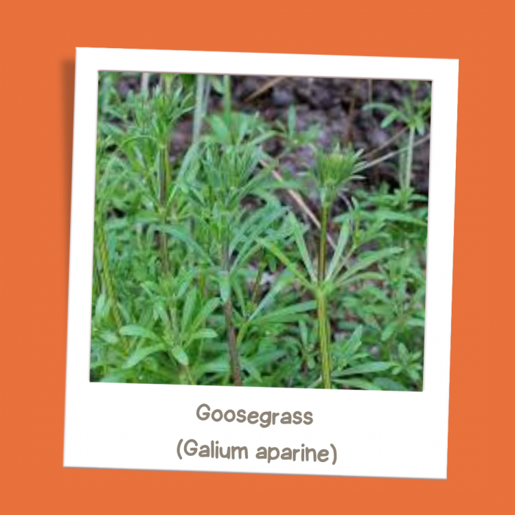 Description: Also known as cleavers, this climbing plant has whorled leaves and tiny white flowers. The stems and leaves have tiny hooks that make them stick to clothing.